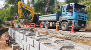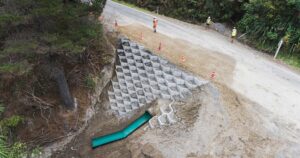 The $0 – $2M category was won by Fulton Hogan’s Wairarapa team who, on behalf of Masterton District Council, addressed multiple road washouts and damage to bridge foundations in Eastern Wairarapa using the Ecoreef® (www.ecoreef.co.nz) system. The images below show the interlocking honeycomb-shaped system being installed in different parts of the $1.9M project.