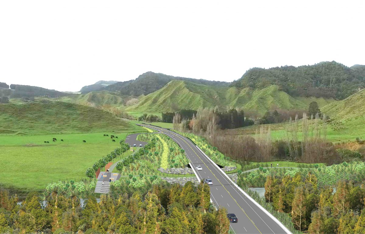 The new route will include two bridges over the Awakino River, along with a passing lane, rest area and walkway to the tunnel.